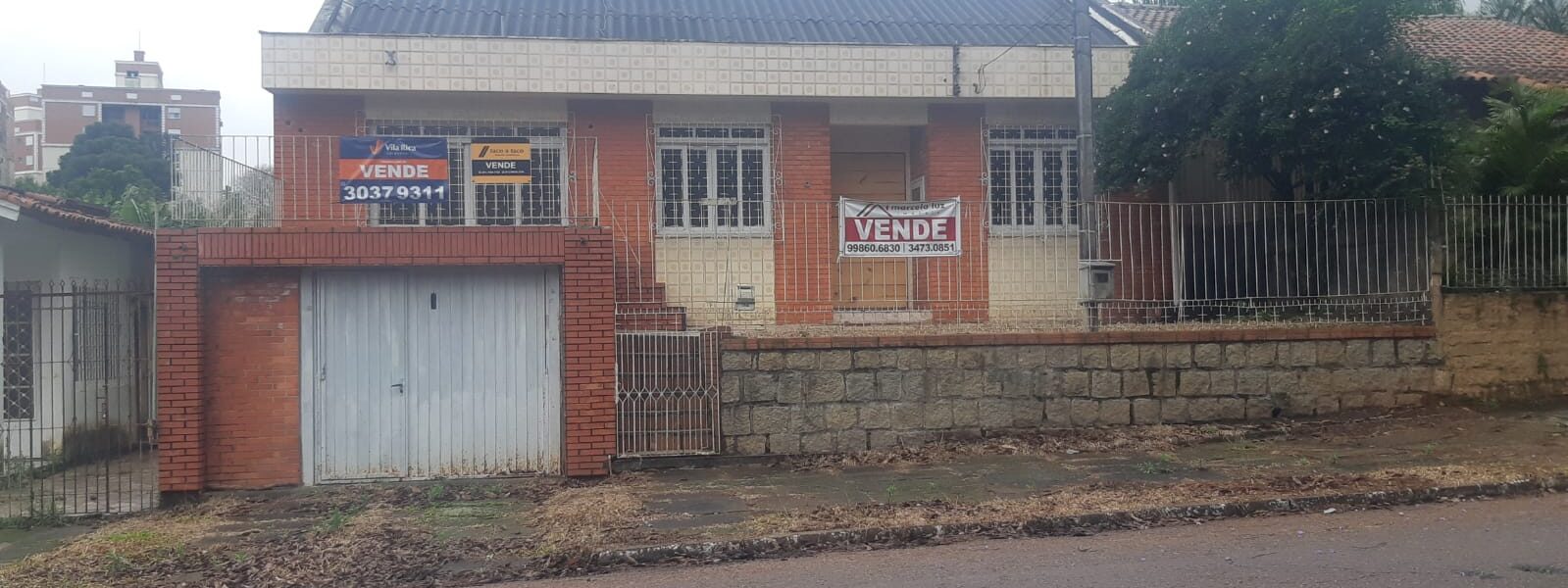 Casa de alvenaria com 3 dormitórios, sala, cozinha, banheiro, área com churrasqueira, garagem para 2 carros, banho auxiliar e pátio nos fundos.