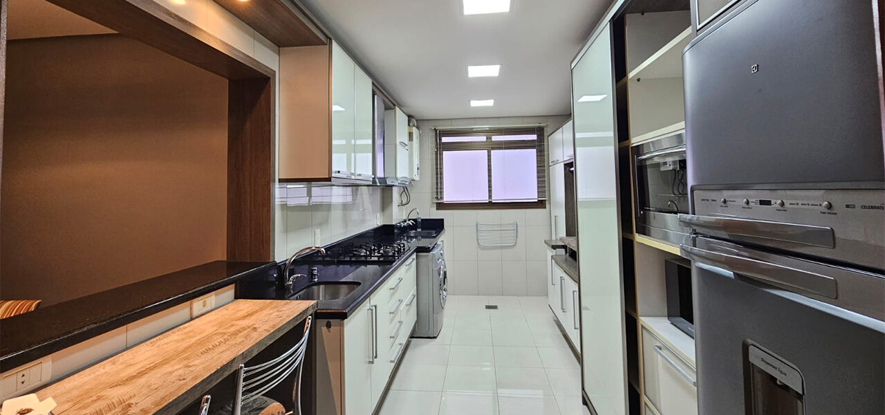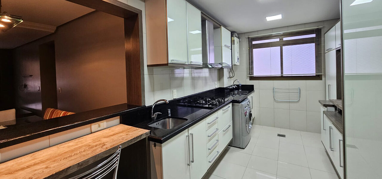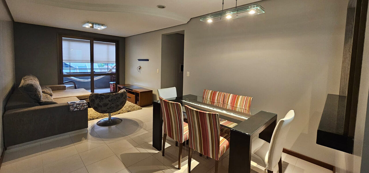 Ótimo apartamento de frente, semi-mobiliado, com 3 dormitórios, sendo 1 suíte, sala com 2 ambientes, cozinha, área de serviços, 2 banheiros, 3 vagas de garagem.